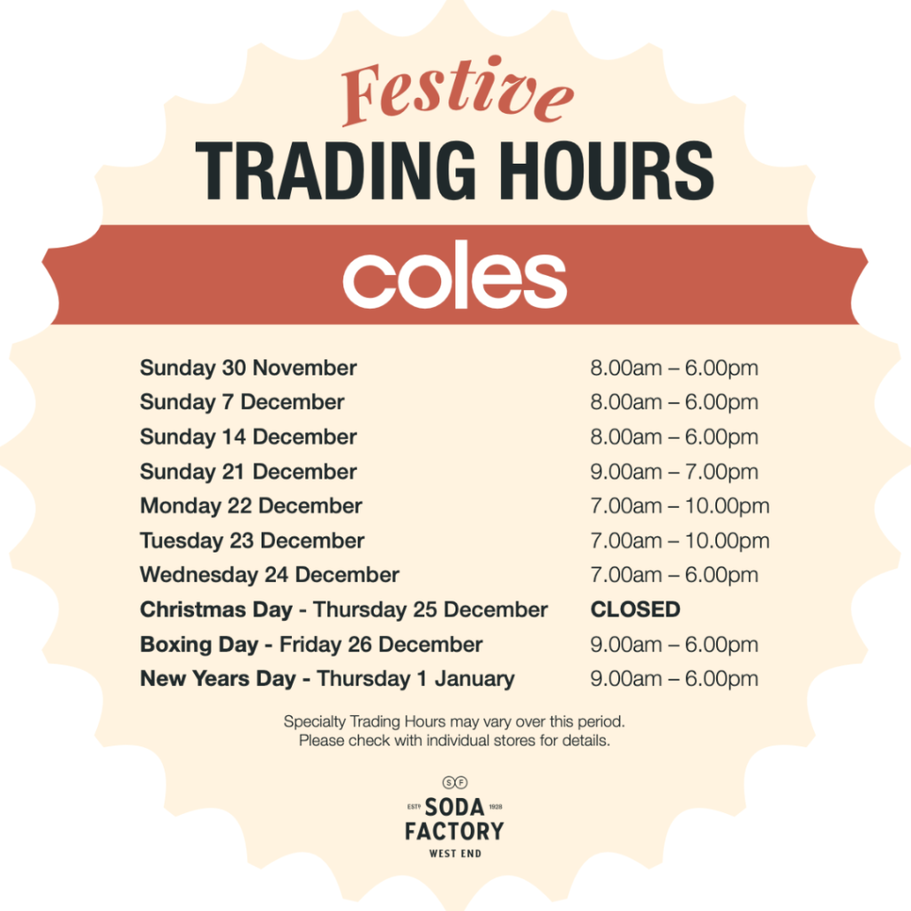 In the lead-up to Christmas, Coles will be open later, giving you more time to stock up on everything you need for the big day.